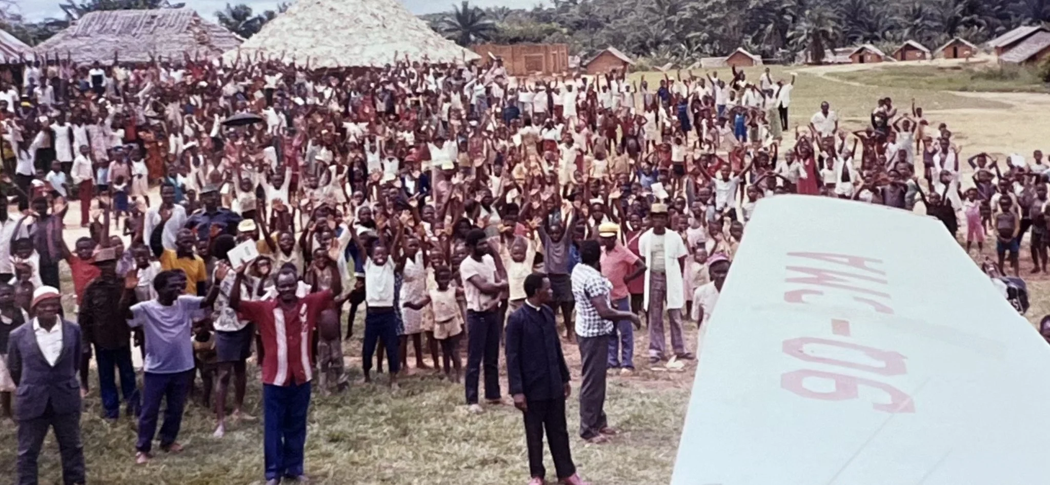 the plane filled the grass airstrip, whooping, dancing and singing praises to